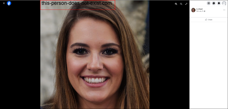 Some GAN websites offer their generated pictures at no cost to users but add a watermark on the top or bottom of the picture. Users can then either crop out the watermark or use the picture with the website’s branding. Most of the GAN images on Facebook and X did not display watermarks, though one Facebook account named “Lia Reed” failed to crop it out, keeping the label of the GAN image source, This Person Does Not Exist.